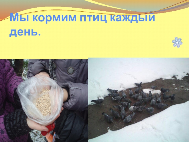 Слайд 13Мы кормим птиц каждый день.