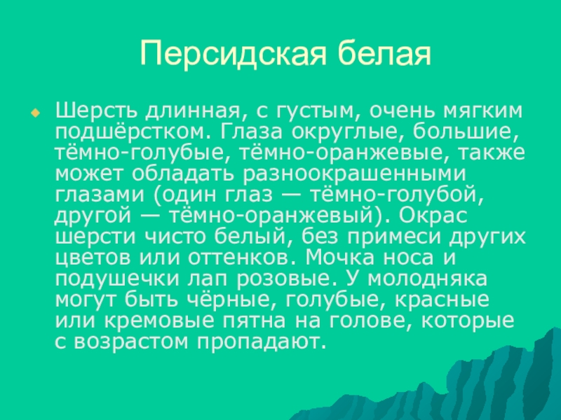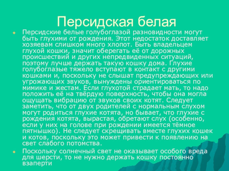 Персидские белые голубоглазой разновидности могут быть глухими от рождения. Этот