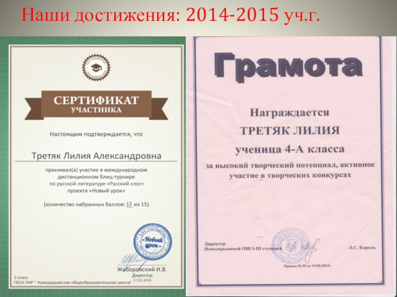 Слайд 10Наши достижения: 2014-2015 уч.г.