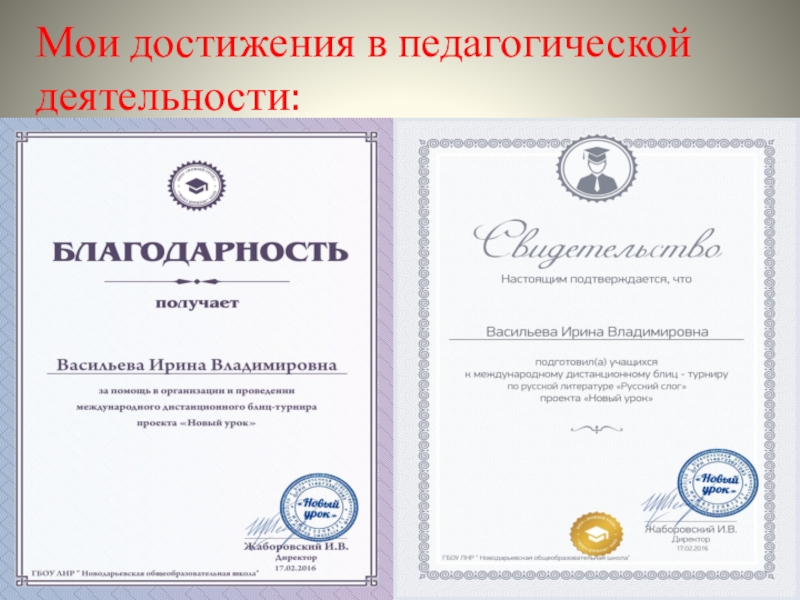 Портфолиоучителя начальных классовГБОУ « Новодарьевская общеобразовательная школа»Васильевой Ирины Владимировны