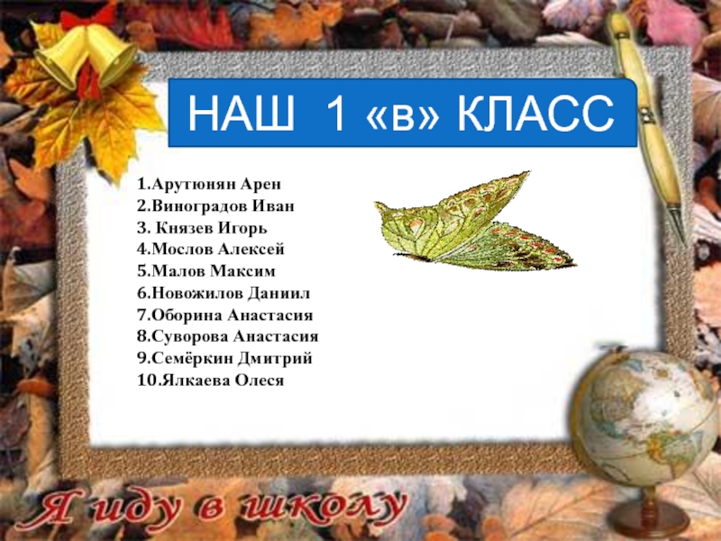 НАШ 1 «в» КЛАСС1.Арутюнян Арен2.Виноградов Иван3. Князев Игорь4.Мослов Алексей5.Малов Максим6.Новожилов Даниил7.Оборина Анастасия8.Суворова Анастасия9.Семёркин Дмитрий10.Ялкаева Олеся