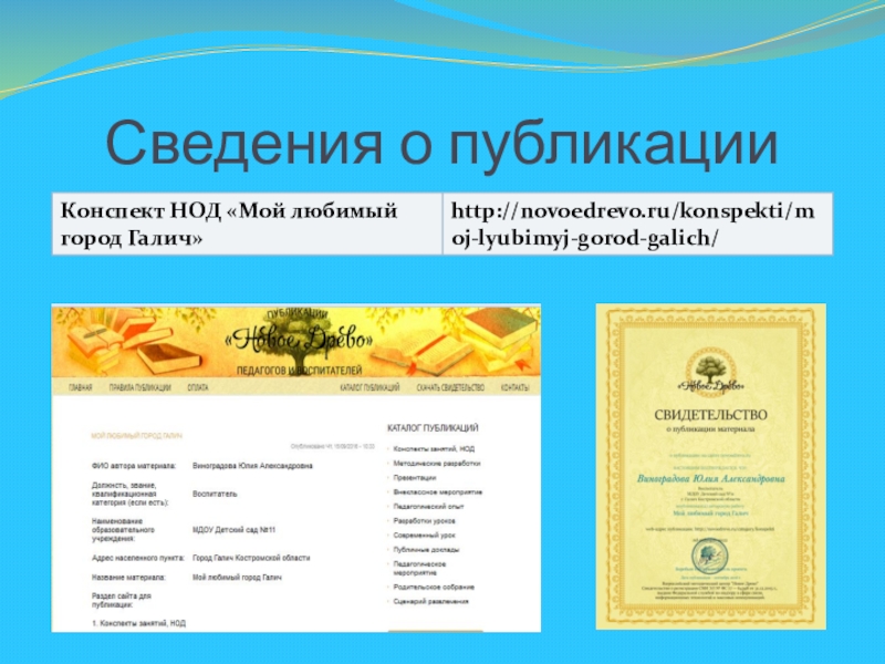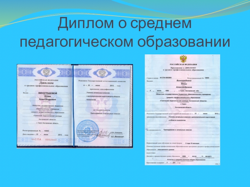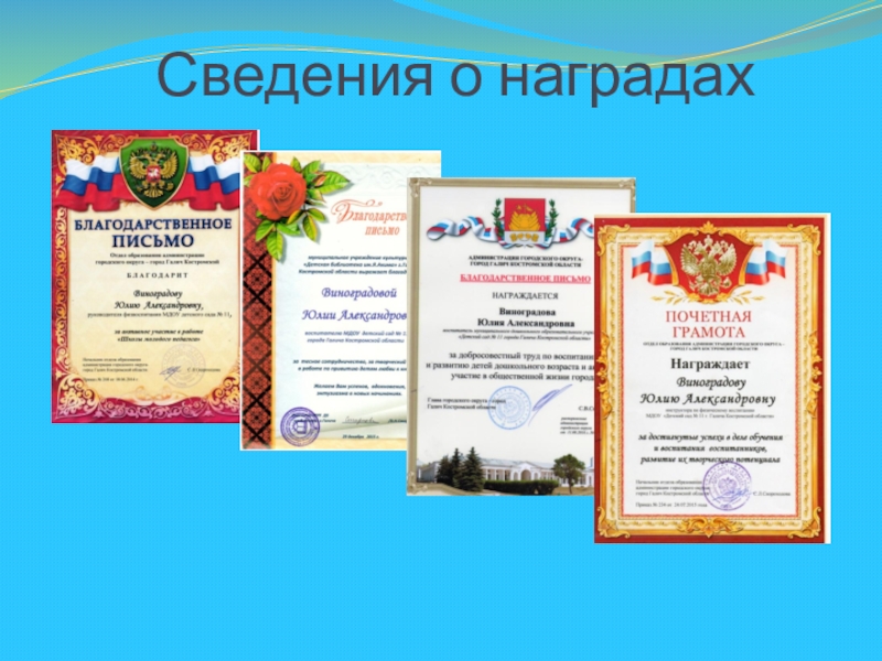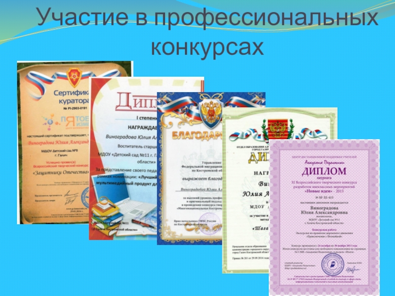 Презентация, доклад Портфолио педагога Виноградова Юлия Александровна