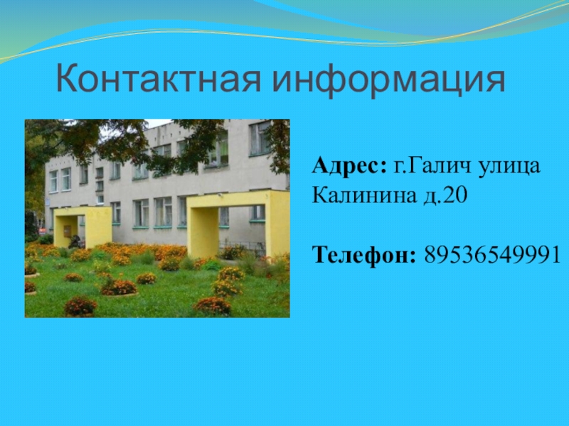 Контактная информацияАдрес: г.Галич улица Калинина д.20Телефон: 89536549991