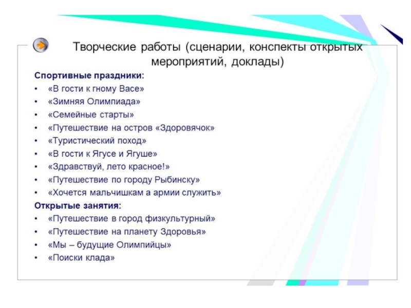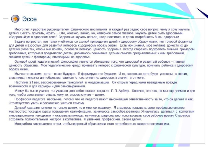 Презентация Портфолио руководителя физического воспитания Детские презентации