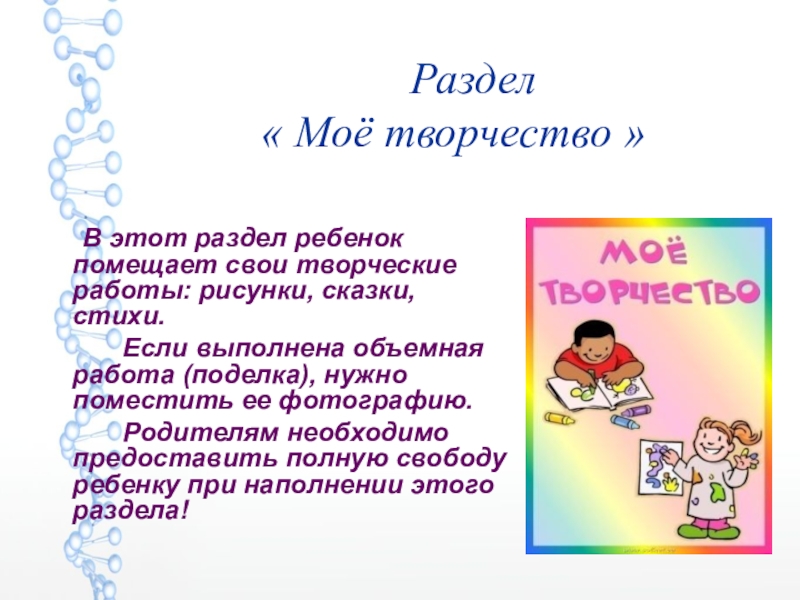 Родителям необходимо предоставить полную свободу ребенку при наполнении этого раздела!