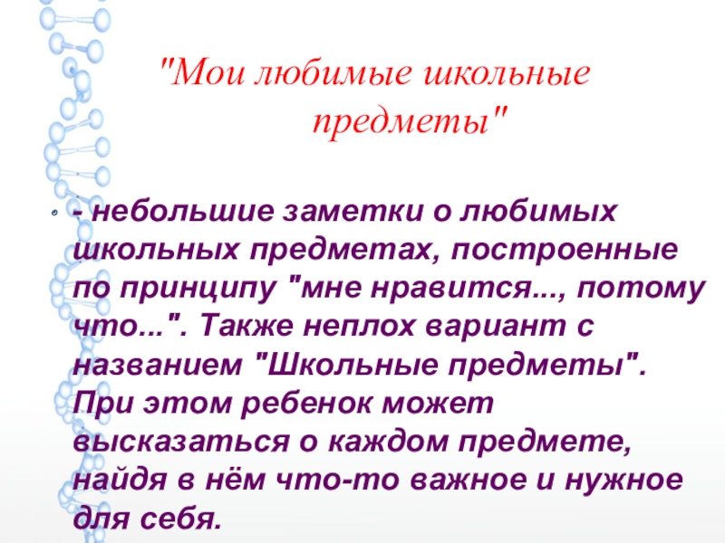 - небольшие заметки о любимых школьных предметах, построенные