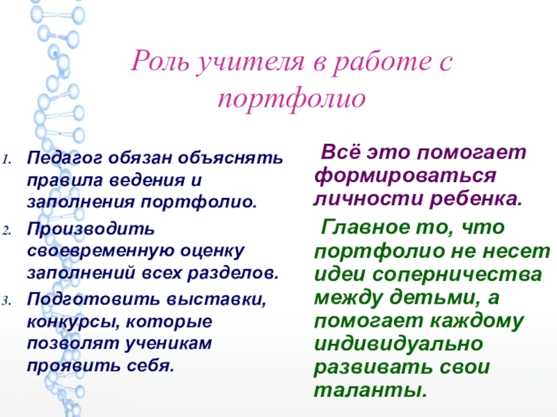 Слайд 5Роль учителя в работе с портфолио
