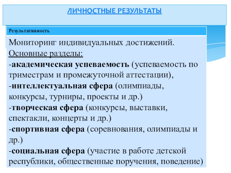 Слайд 9ЛИЧНОСТНЫЕ РЕЗУЛЬТАТЫ