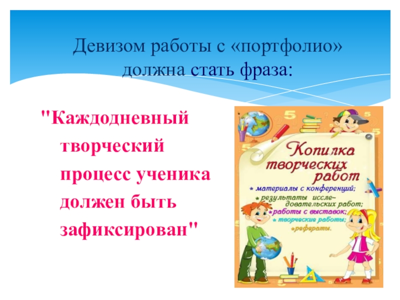 Слайд 4 Девизом работы с «портфолио» должна стать фраза:
