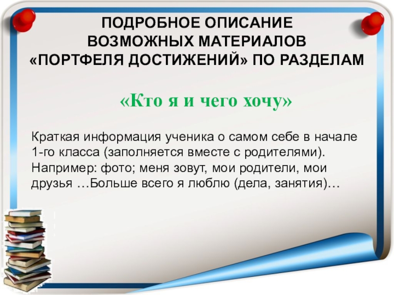 Например: фото; меня зовут, мои родители, мои друзья …Больше всего я люблю (дела, занятия)…