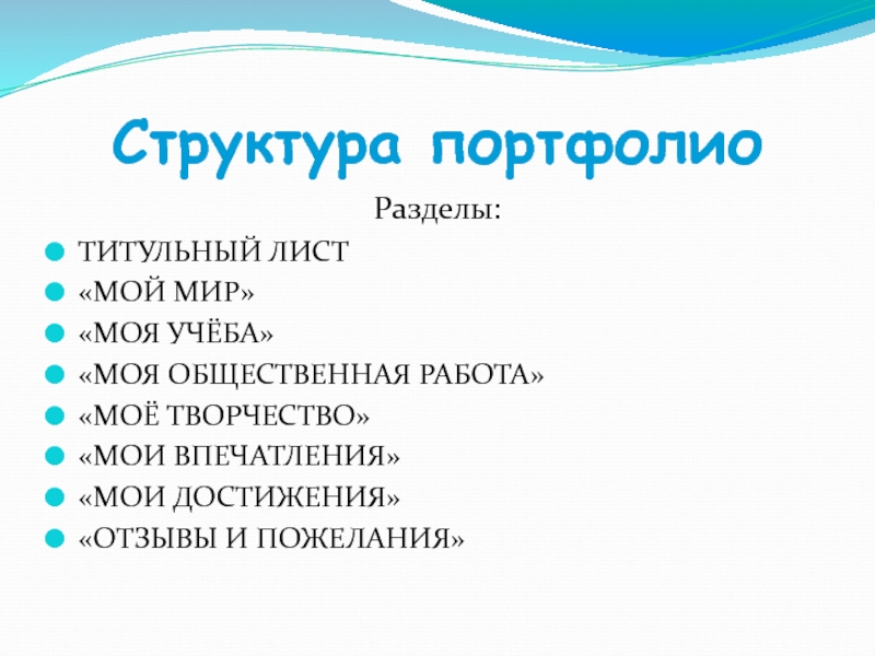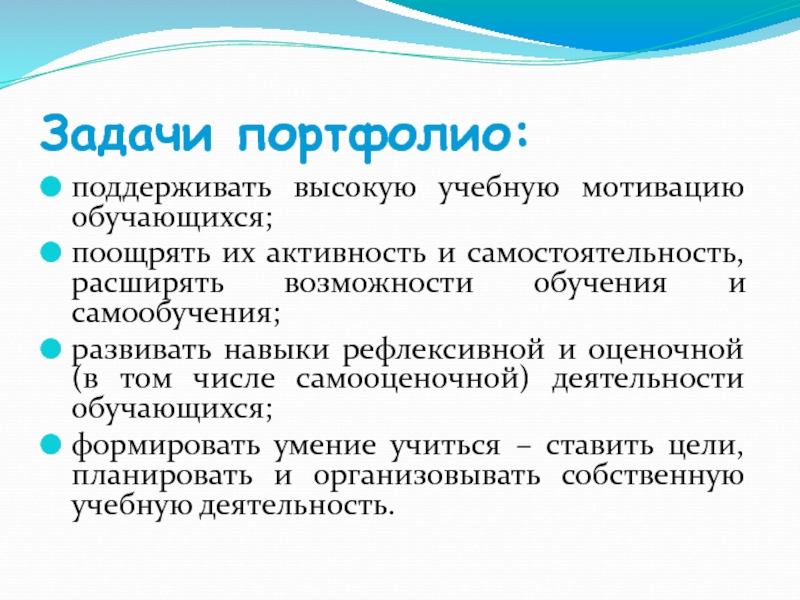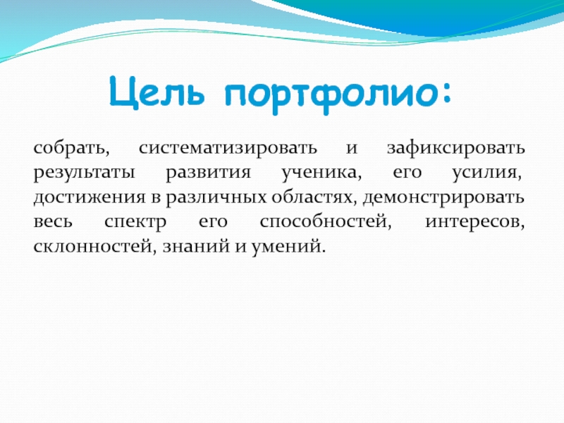 достижения в различных областях, демонстрировать весь спектр его способностей, интересов, склонностей, знаний и умений.