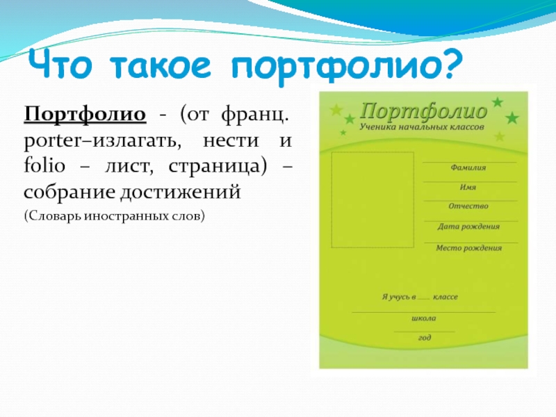 Портфолио - (от франц. porter–излагать, нести и folio –