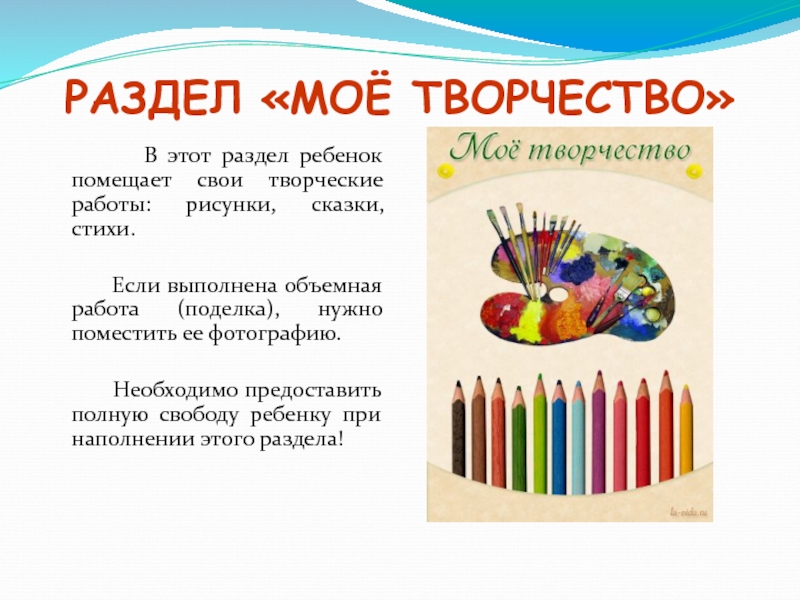 Необходимо предоставить полную свободу ребенку при наполнении этого раздела!