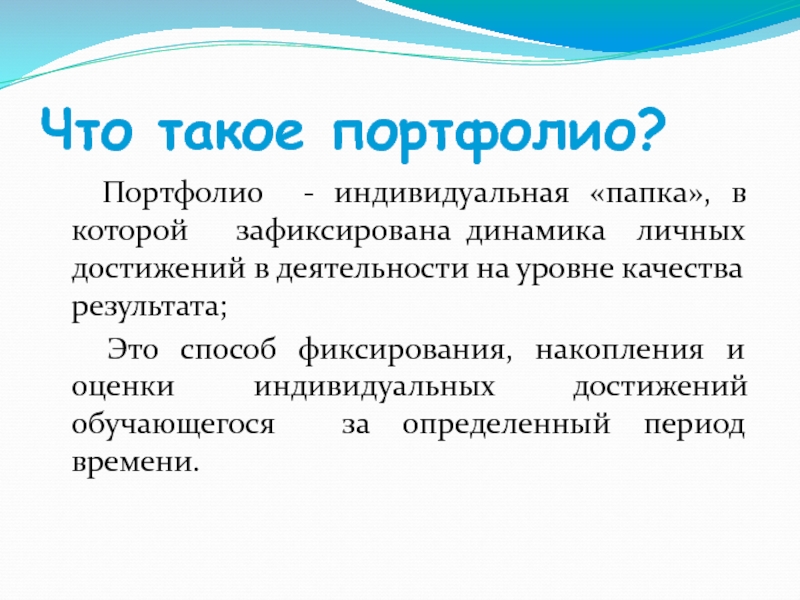 Это способ фиксирования, накопления и оценки индивидуальных достижений обучающегося за определенный период времени.