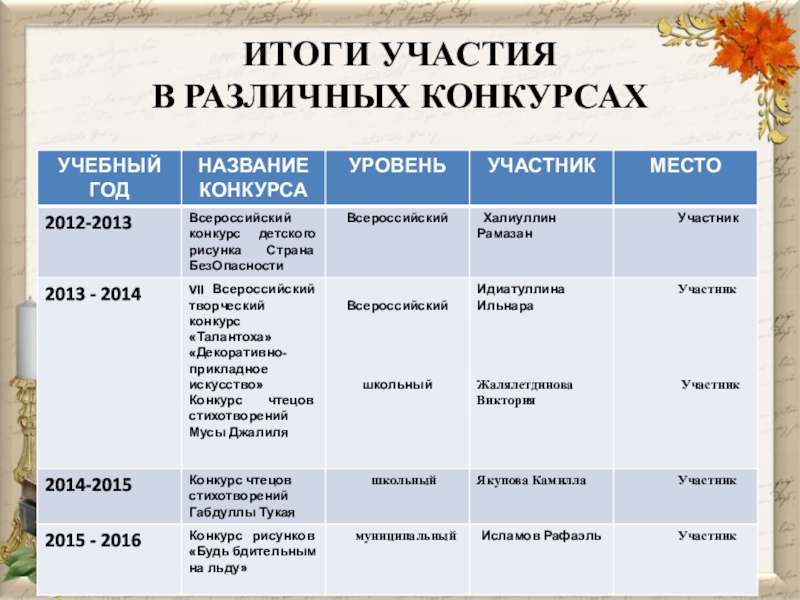 РАЗЛИЧНЫХ КОНКУРСАХ