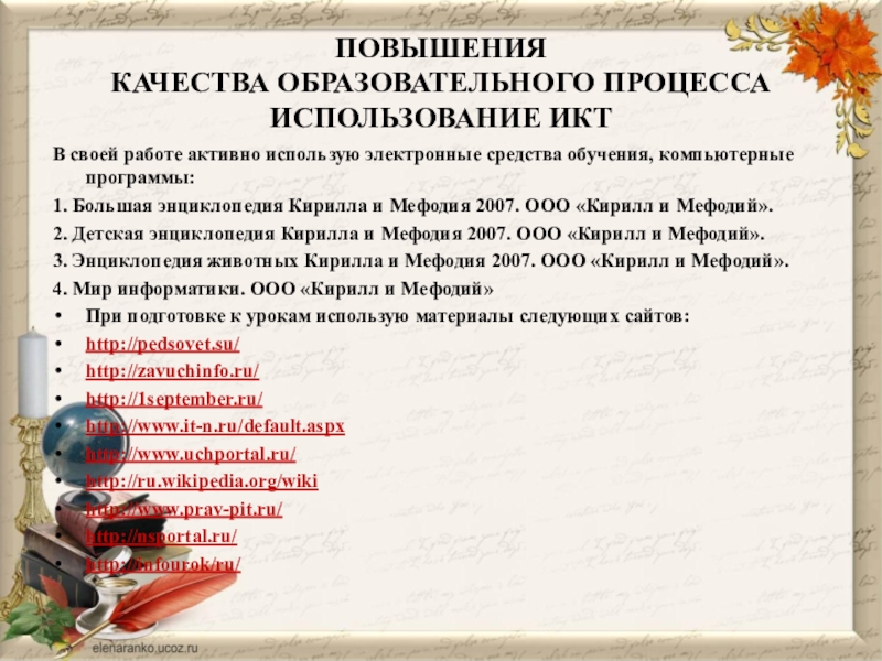 Для подготовки к урокам активно применяю компьютерные программы, с помощью этих программ создаю собственные презентации, дидактические материалы к урокам