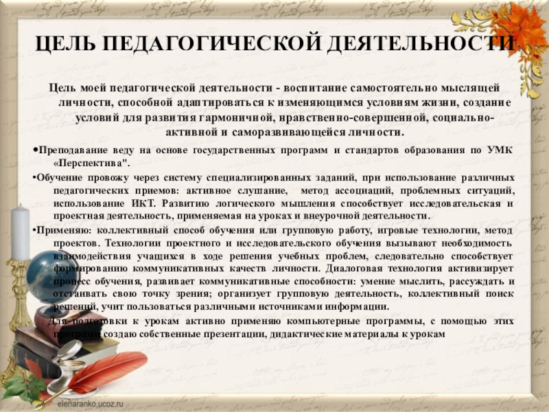 Цель моей педагогической деятельности - воспитание самостоятельно мыслящей личности,