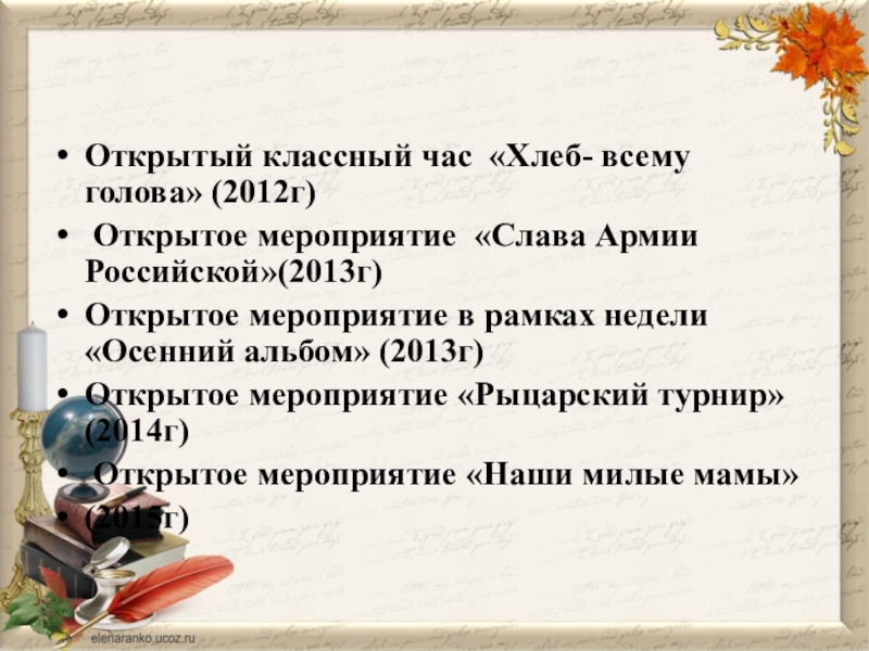 Открытое мероприятие в рамках недели «Осенний альбом» (2013г)