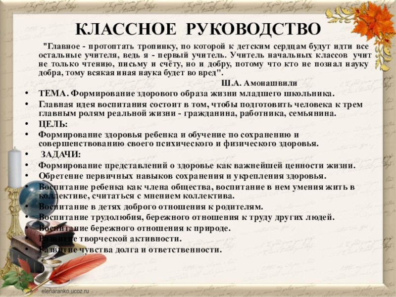 ТЕМА. Формирование здорового образа жизни младшего школьника.