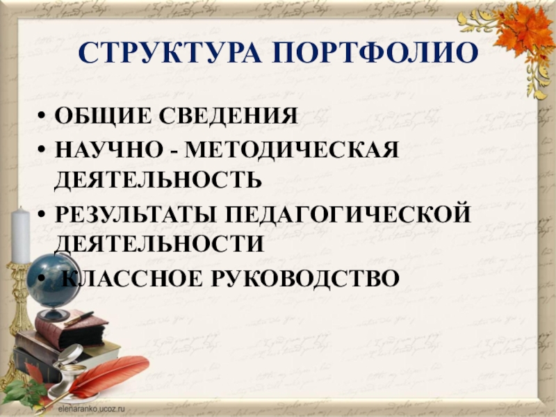 Слайд 3СТРУКТУРА ПОРТФОЛИО