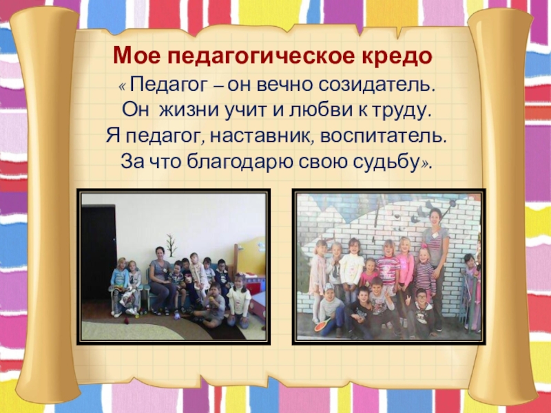 Мое педагогическое кредо      « Педагог – он вечно созидатель.Он жизни учит и любви к труду.Я педагог, наставник, воспитатель.За