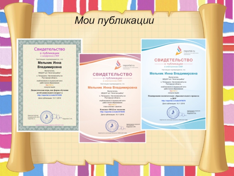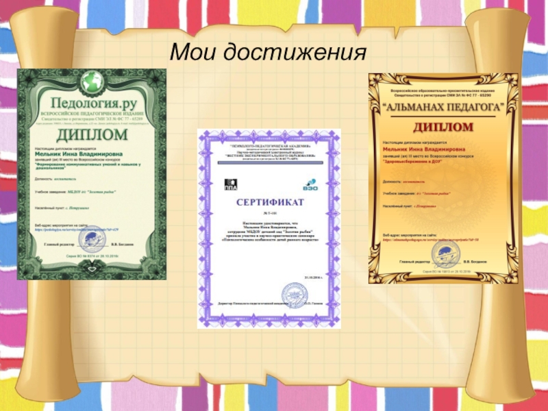 портфолиоВоспитателя МельникИнны ВладимировныМБДОУ Петрушинский детский сад «Золотая рыбка»
