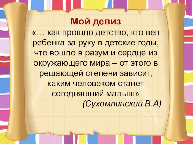 Мой девиз«… как прошло детство, кто вел ребенка за руку в детские годы, что вошло в разум