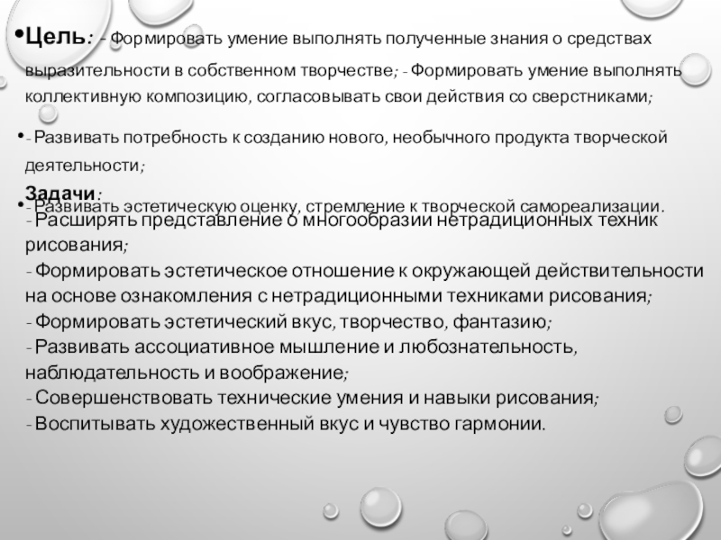 - Расширять представление о многообразии нетрадиционных техник рисования;
