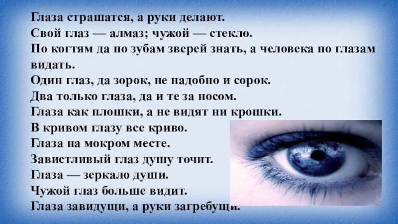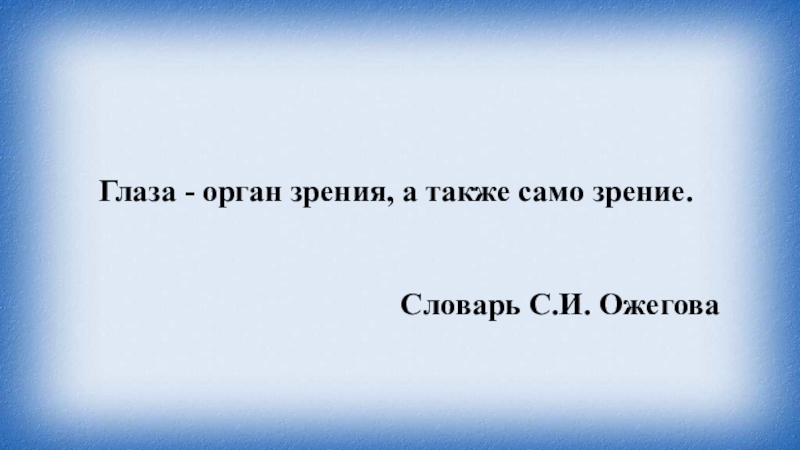 Слайд 3Глаза - орган зрения, а также само зрение.