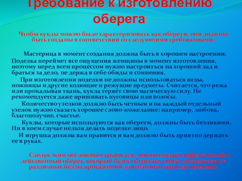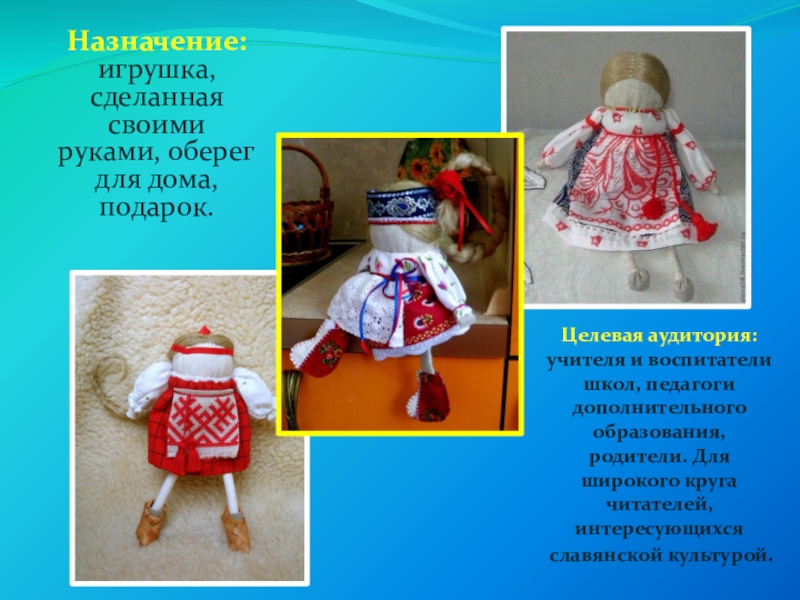 · привитие интереса к изготовлению обереговых, обрядовых и игровых кукол;