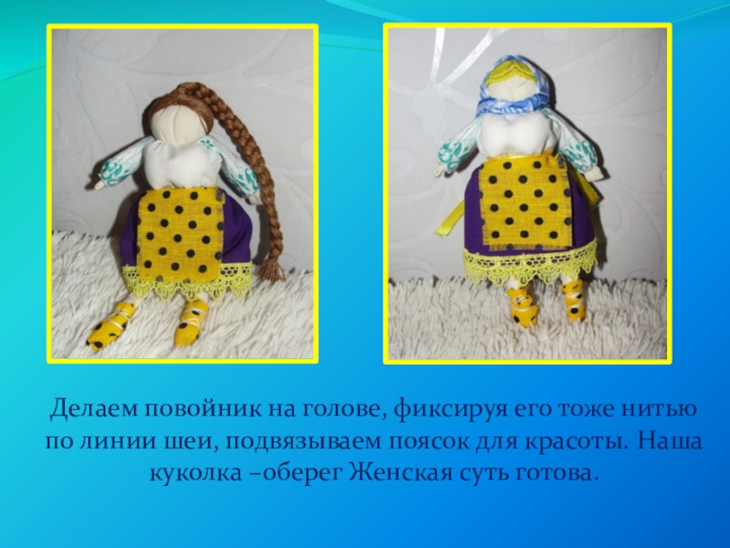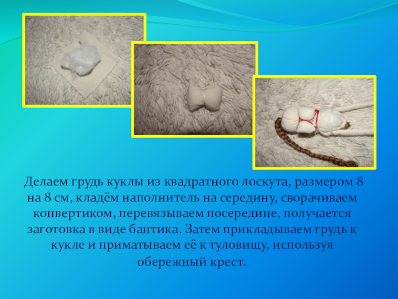 · создание игровой куклы по традиционной технологии.