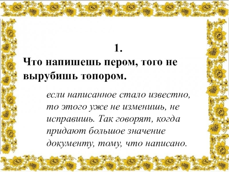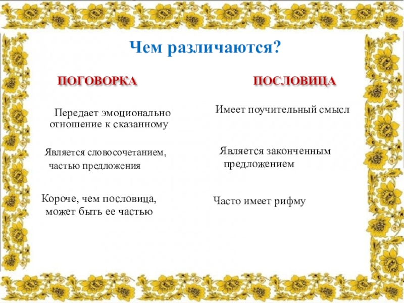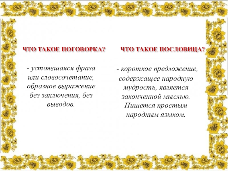 - короткое предложение, содержащее народную мудрость, является законченной мыслью. Пишется простым народным языком.