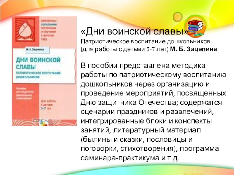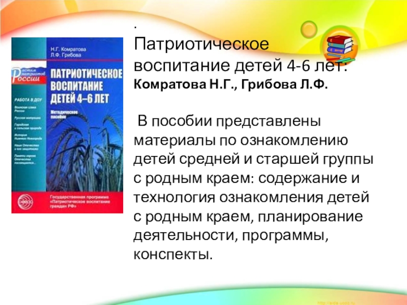 Программа нравственно-патриотического воспитания дошкольников. В приложении содержатся извлечения