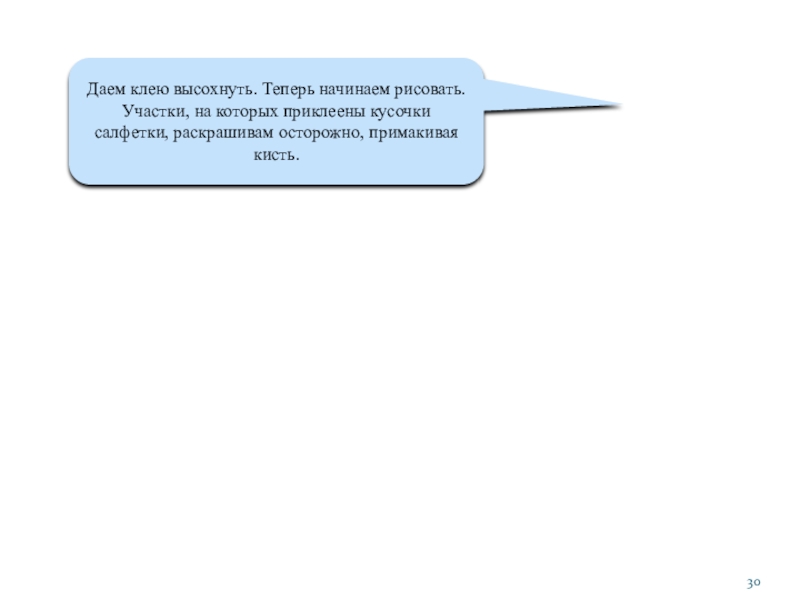 Слайд 30Даем клею высохнуть. Теперь начинаем рисовать.