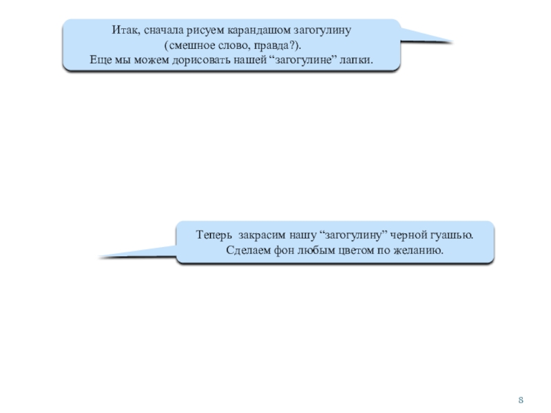 Слайд 8Теперь закрасим нашу “загогулину” черной гуашью. Сделаем фон любым цветом по
