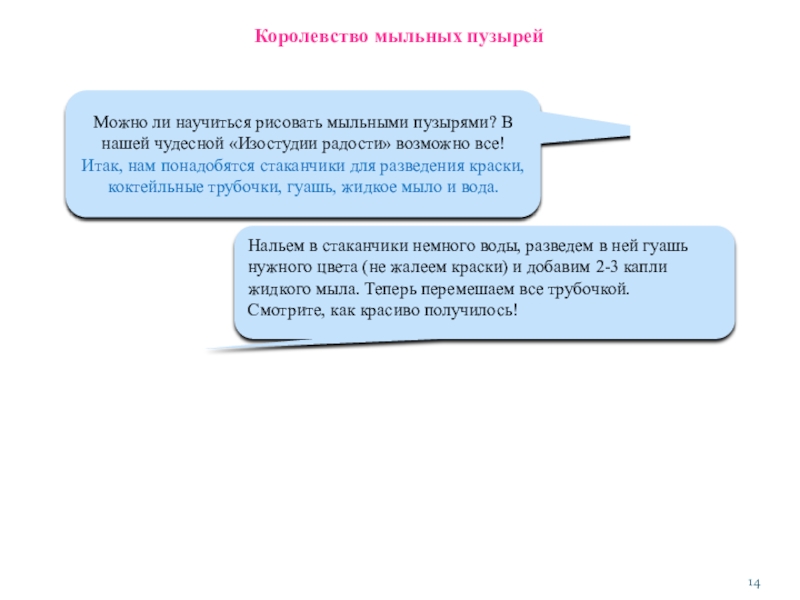 Слайд 14Можно ли научиться рисовать мыльными пузырями? В нашей чудесной «Изостудии радости»