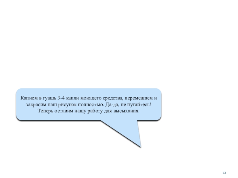 Слайд 12Капнем в гуашь 3-4 капли моющего средства, перемешаем и закрасим наш