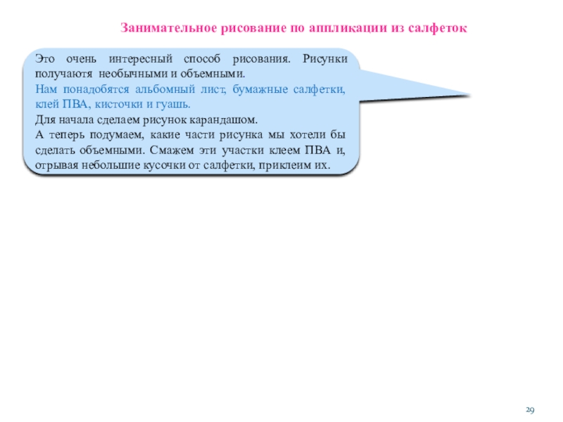 Слайд 29Занимательное рисование по аппликации из салфеток
