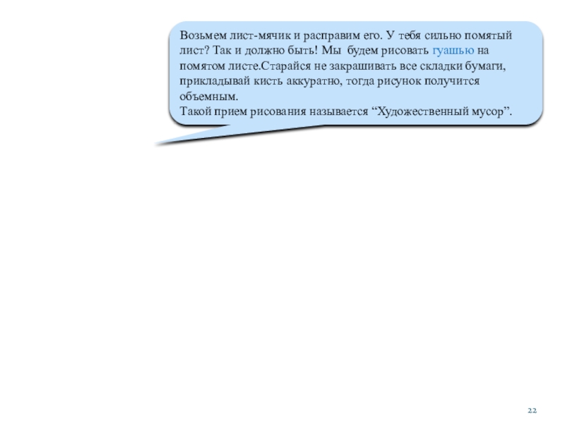 Слайд 22Возьмем лист-мячик и расправим его. У тебя сильно помятый лист? Так
