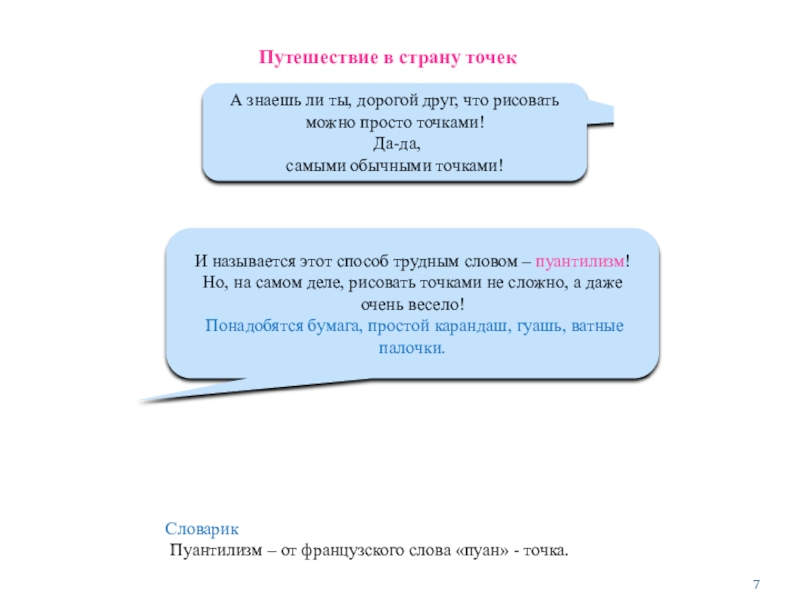 Слайд 7А знаешь ли ты, дорогой друг, что рисовать можно просто точками!