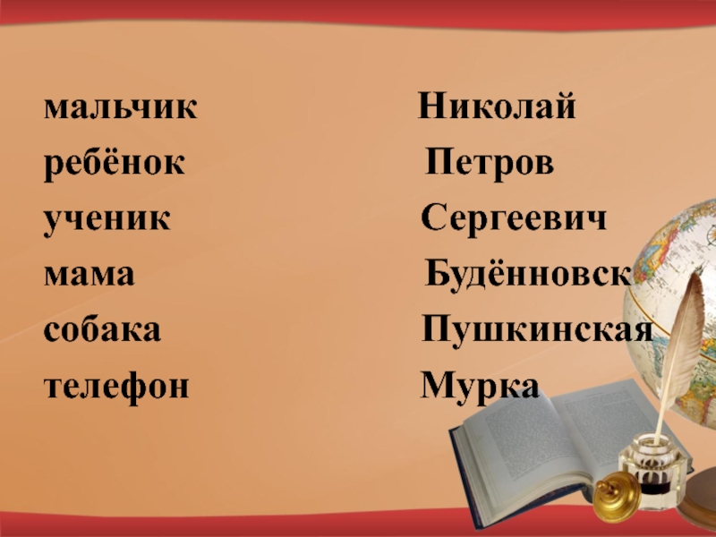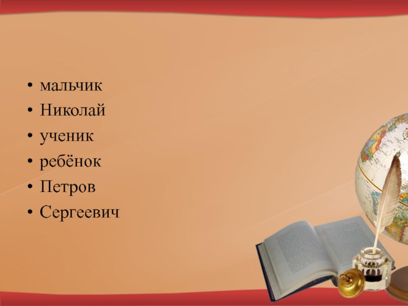 Слайд 16 Составь и напиши предложения с данными словами. Соловьёв. Пение. Серёжа. Слушал. Соловьёв.
