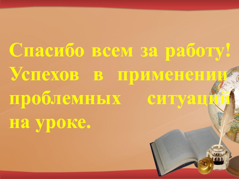 Спасибо всем за работу! Успехов в применении проблемных ситуаций на уроке.