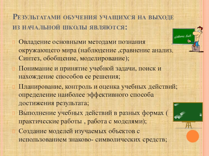 Слайд 3Результатами обучения учащихся на выходе из начальной школы являются: