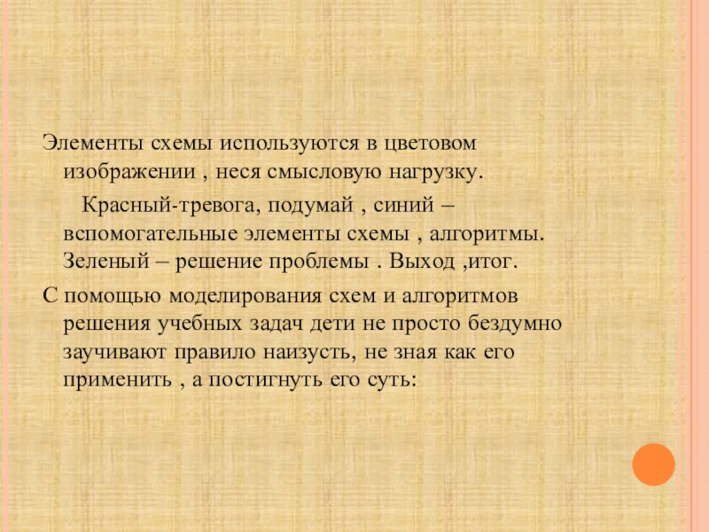 С помощью моделирования схем и алгоритмов решения учебных задач дети не просто бездумно заучивают правило наизусть, не зная как его применить , а постигнуть его суть: