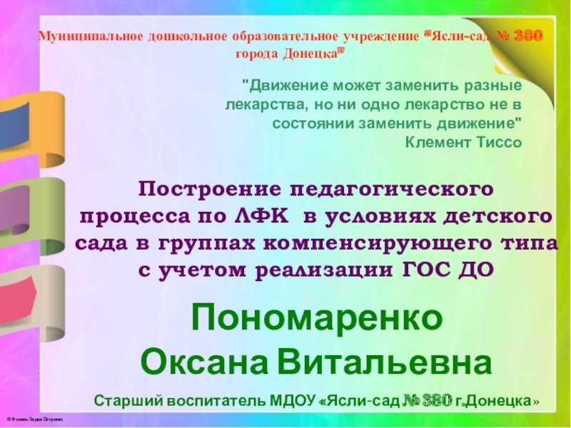 Построение педагогического процесса по ЛФК в условиях детского сада в группах компенсирующего типа с учетом реализации ГОС ДО