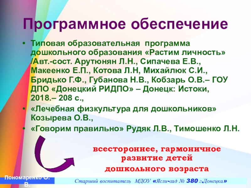 Старший воспитатель МДОУ «Ясли-сад № 380 г.Донецка»