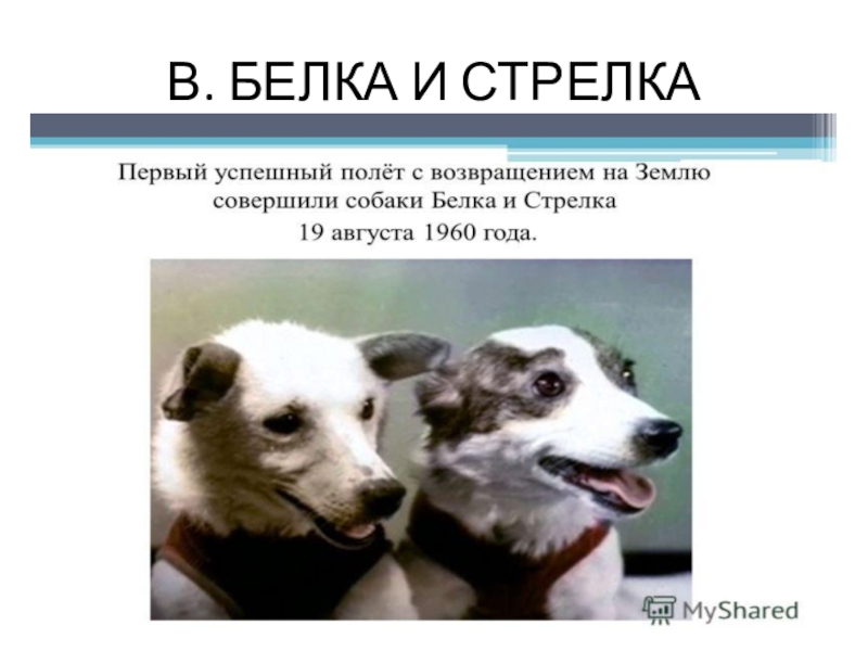 Слайд 15В. БЕЛКА И СТРЕЛКА