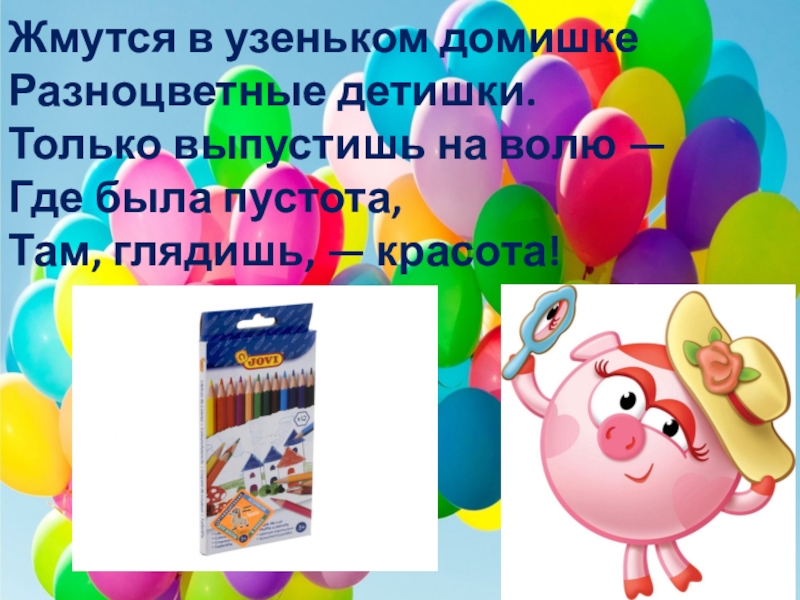 Слайд 18Жмутся в узеньком домишке Разноцветные детишки. Только выпустишь на волю — Где была пустота, Там,