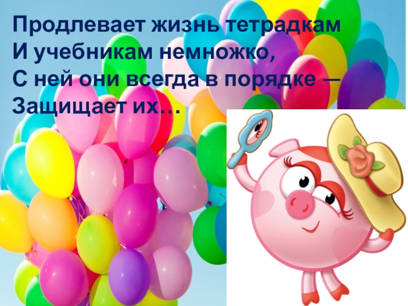 Слайд 17Продлевает жизнь тетрадкам И учебникам немножко, С ней они всегда в порядке — Защищает