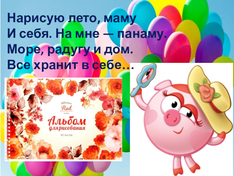 Нарисую лето, маму И себя. На мне — панаму. Море, радугу и дом. Все хранит в себе…